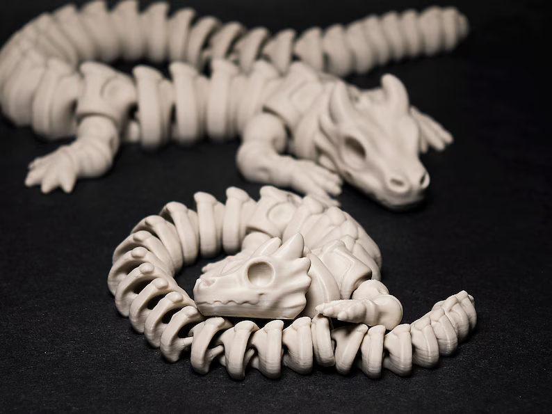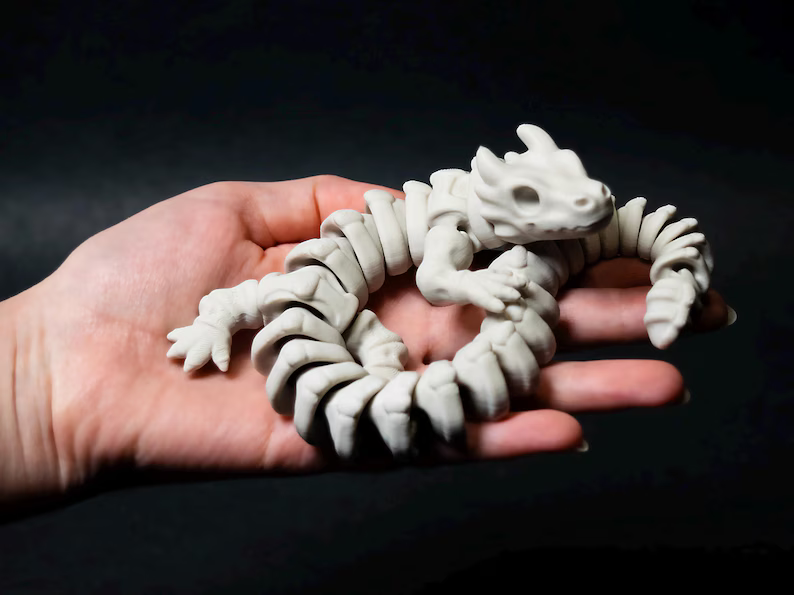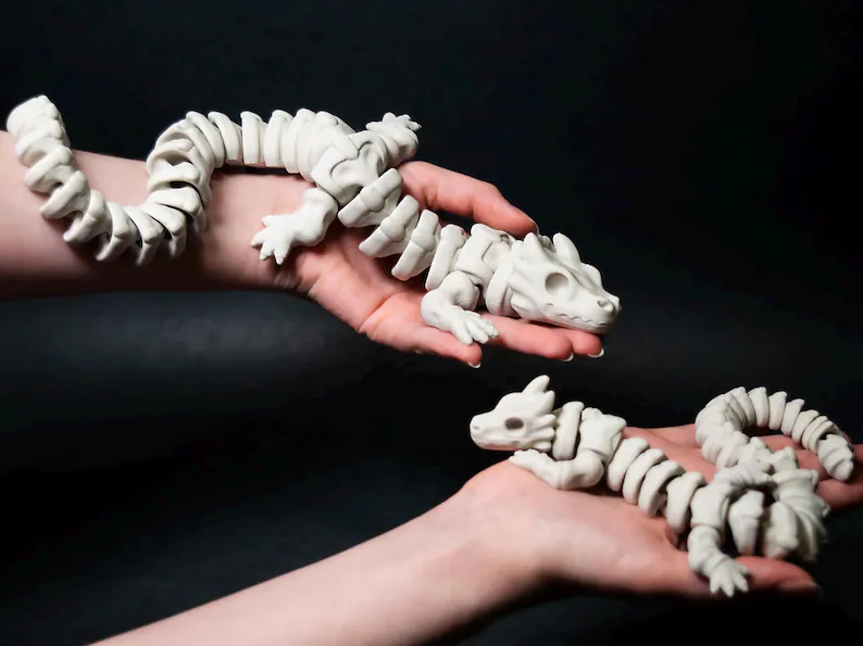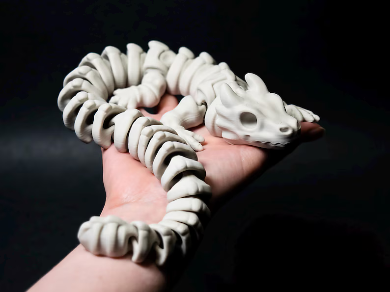 Descubra este incrível dragão esqueleto de ossos, cuidadosamente impresso em 3D, que é o presente perfeito para os amantes de criaturas místicas e fantásticas. Este dragão apresenta detalhes intrincados, capturando a essência de uma criatura lendária num estilo esquelético impressionante. Ideal para decorar o seu espaço, colecionar ou oferecer como um presente único.
