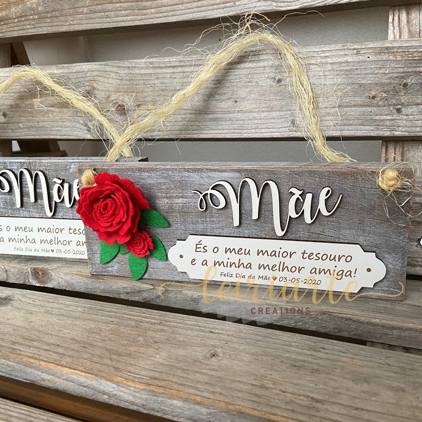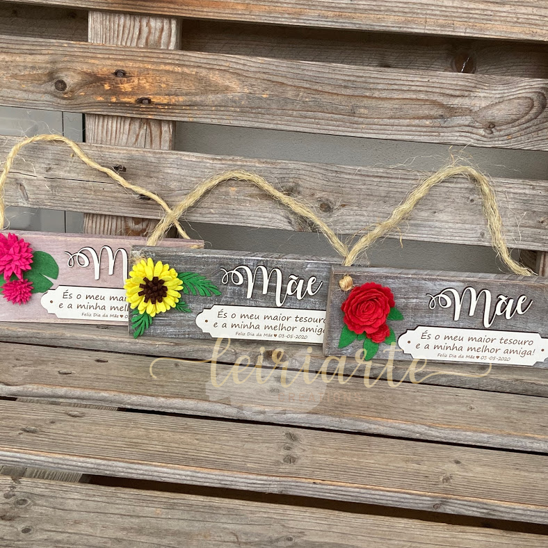 Placa rústica personalizada com flores, com 3 modelos de flores diferentes.