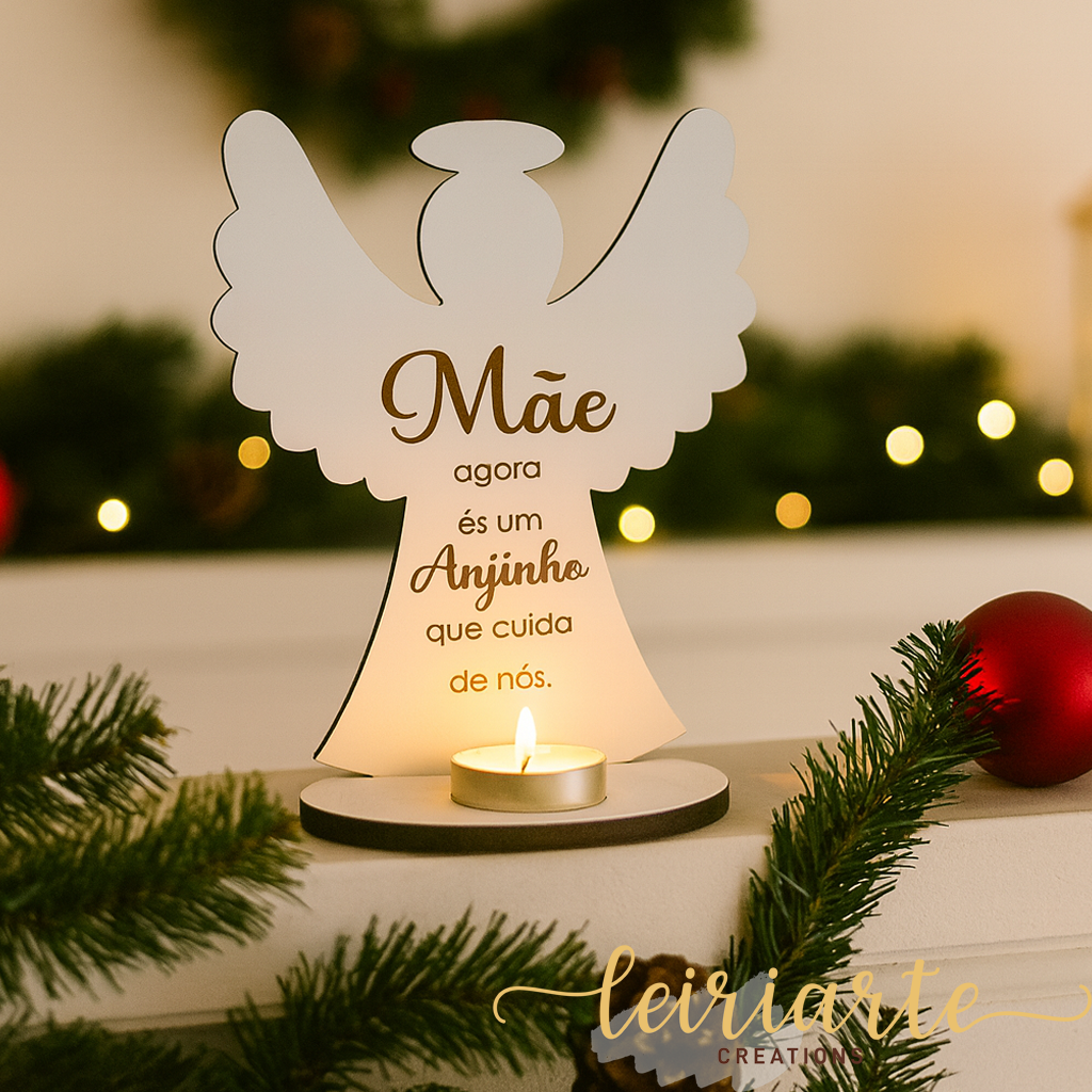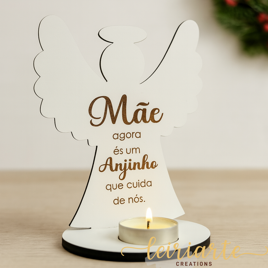 🕊️ Porta Vela Anjo – “Mãe, agora és um Anjinho que cuida de nós” – Uma peça cheia de significado e emoção, criada para homenagear alguém muito especial.